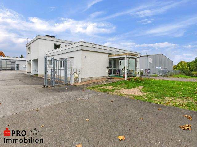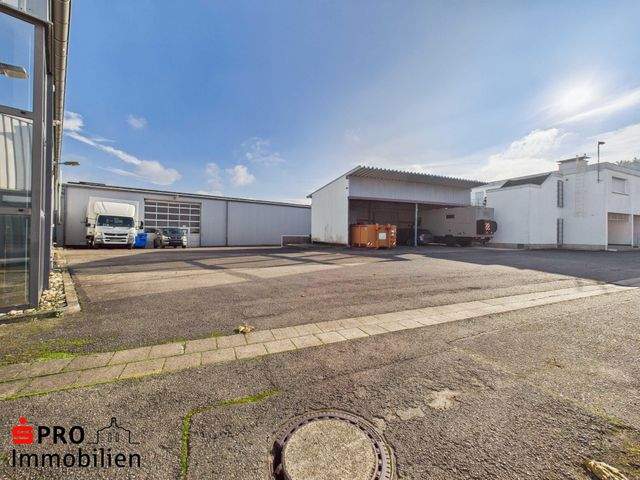 Das gepflegte Gewerbeareal in Neunkirchen bietet auf einem ca. 6.550 m² großen Grundstück eine vielseitig nutzbare Kombination aus Hallen-, Büro- und Wohnflächen.