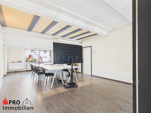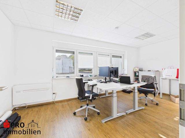 Im Erdgeschoss des Wohn- und Geschäftshauses befinden sich moderne Büroeinheiten mit separatem Eingang, im Untergeschoss Werkstatt- und Lagerflächen sowie Technikräume. Zwei Wohneinheiten ergänzen das Nutzungskonzept und bieten eine interessante Mischnutzung aus Gewerbe und Wohnen.