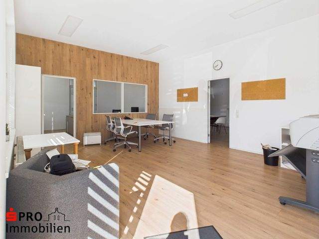 Für den täglichen Bedarf stehen Ihnen zwei Supermärkte und zwei Bäckereien in wenigen Gehminuten Entfernung zur Verfügung. Ihre Mitarbeiter und Kunden finden in der Nähe auch eine Schule, eine Grundschule und einen Kindergarten, was die Vereinbarkeit von Familie und Beruf erleichtert.