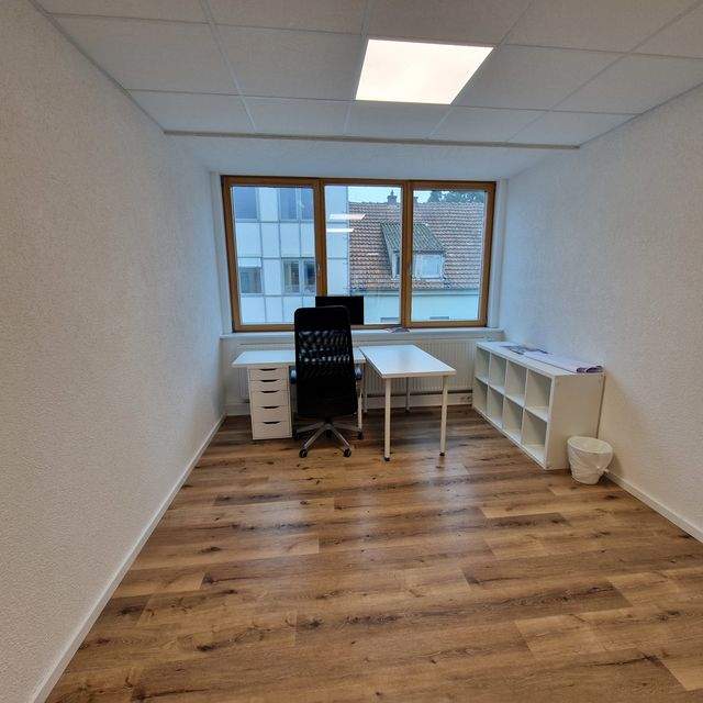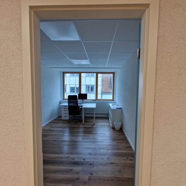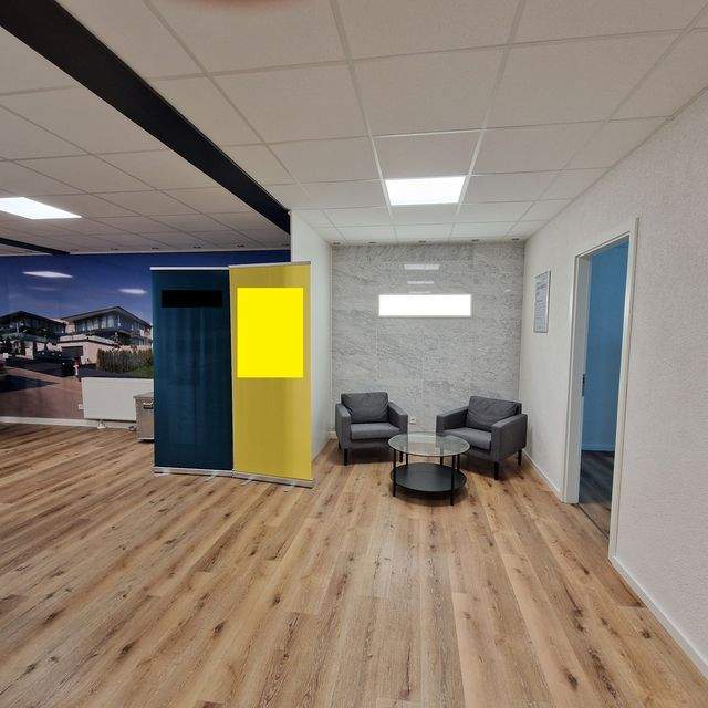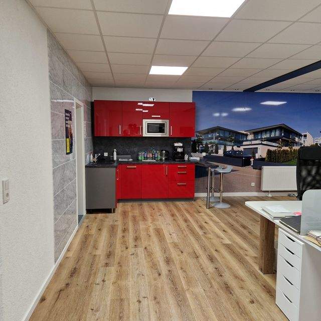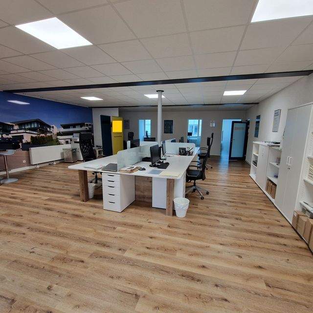 Die Büroetage besteht aus einem zentralen Großraum, der mit einer Arbeitsplatzinsel für bis zu 8 MItarbeitern ausgestattet ist. Darum herum befinden sich: ein Besprechnungszimmer, 3 weitere helle Büros, Damen und Herren WC