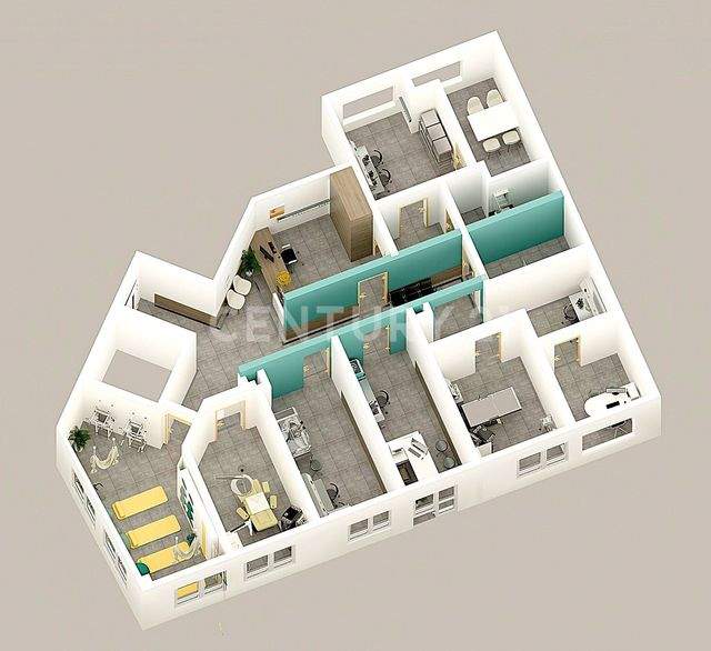 Insgesamt verfügt die Gewerbeeinheit über 4 Arbeitsräume, welche als Büros oder aber auch je nach Nutzung als Behandlungsräume ausgestattet werden können. Bei Bedarf kann – nach Rücksprache mit dem Vermieter – die derzeit bestehende Aufteilung auch geändert und aus mehreren kleinen Räumen ein großer Raum hergestellt werden. Hier kommt es ganz auf Ihre Bedürfnisse und die geplante Nutzung an. Um Ihnen hier entsprechende Anreize zu geben, haben wir von unseren Architekten zu den einzelnen Räumlichkeiten Einrichtungsbeispiele visualisieren lassen. Schauen Sie sich gerne die Bilder an und lassen Sie sich davon inspirieren.