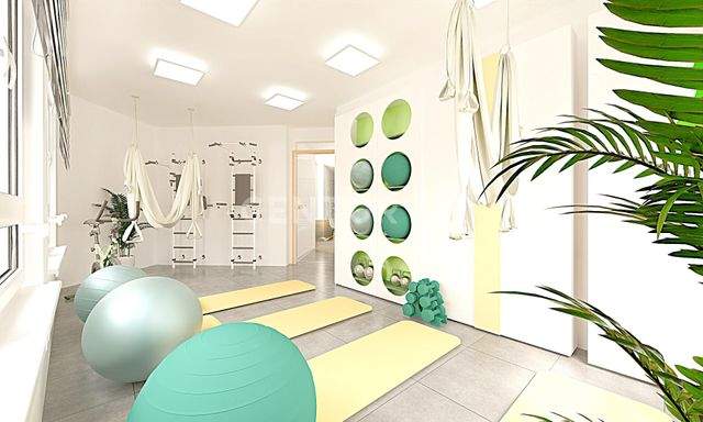 Derzeit gibt es einen großen Anmeldungsbereich sowie zur gemeinschaftlichen Nutzung eine kleine Küche mit zwei Aufenthaltsräumen und zwei Toiletten-Bereiche, welche bisher jeweils als Personal- und Patienten-WC genutzt wurden sowie ein kleines Lager, welches sich ebenfalls im hinteren Bereich der Gewerbeeinheit befindet.