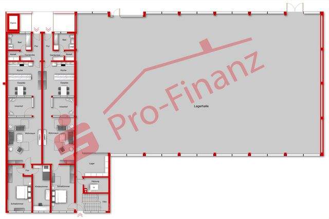 Gewerbehalle mit Außenfläche und einer Wohneinheit